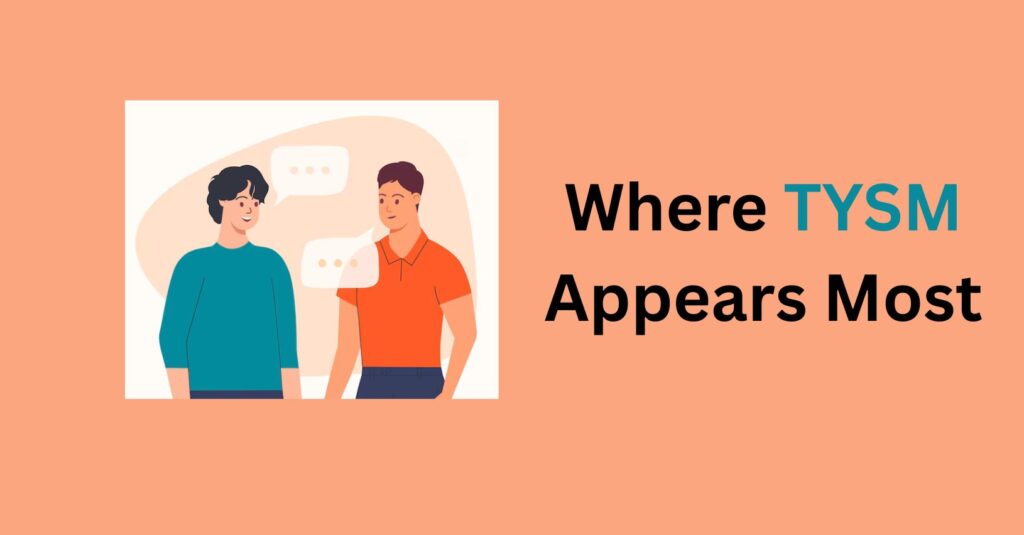 - WhatsApp groups, Facebook Messenger chats, and similar platforms frequently use TYSM for quick appreciation. It fits naturally into fast, informal exchanges.