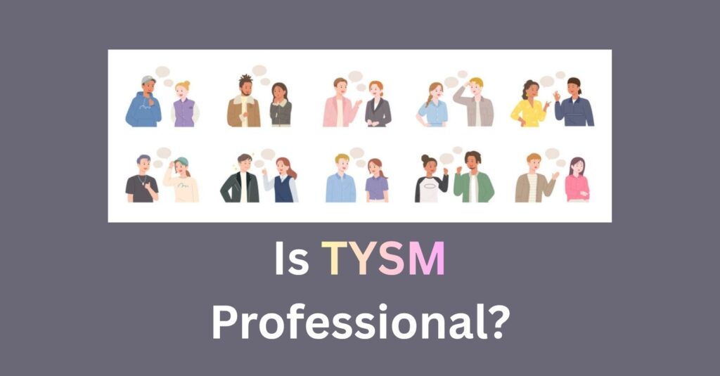 TYSM means Polite, elevated language balancing formality with warmth. Professional settings without stiffness. Example: “I appreciate it greatly-thank you for understanding.”